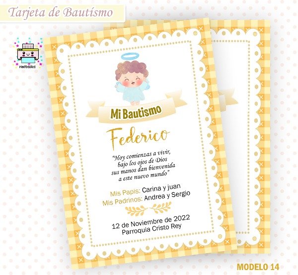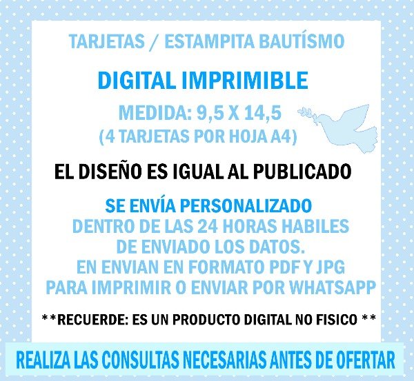 TARJETA ESTAMPITA BAUTISMO ANGELITO PERSONALIZADA LISTA PARA IMPRIMIR