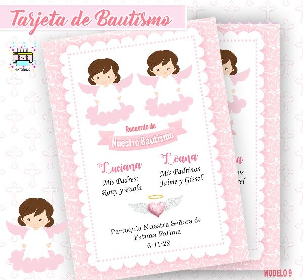 TARJETA ESTAMPITA BAUTISMO OSITA NIÑA PERSONALIZADA LISTA PARA IMPRIMIR