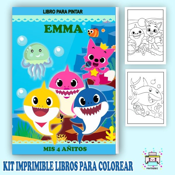 LIBRITO PARA COLOREAR IMPRIMIBLE PERSONALIZADO TEMÁTICA BABY SHARK