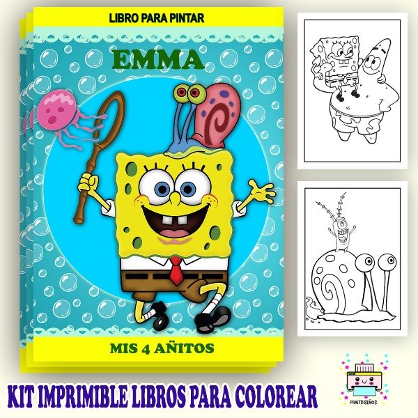 LIBRITO PARA COLOREAR IMPRIMIBLE PERSONALIZADO TEMÁTICA BOD ESPONJA