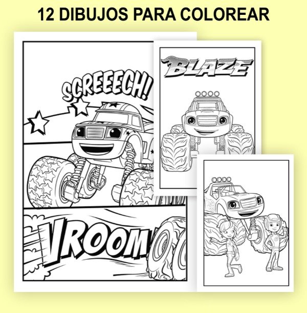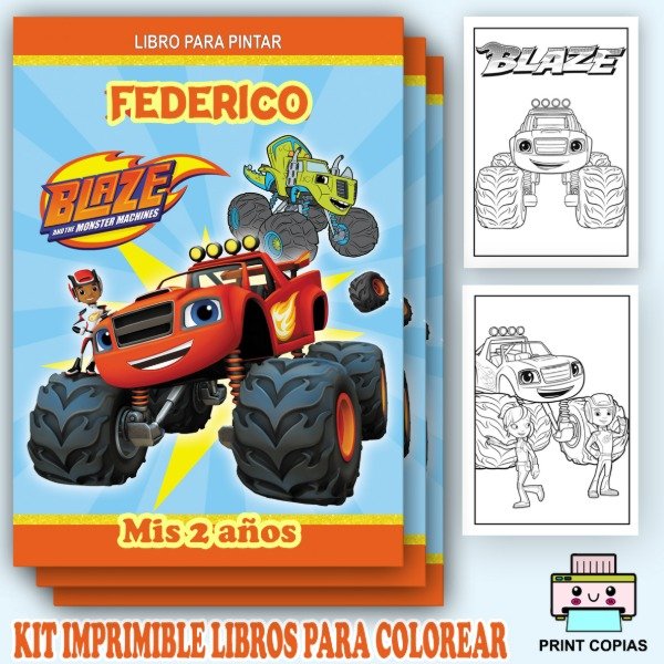 LIBRITO PARA COLOREAR PERSONALIZADOS TEMÁTICA BLAZE AND THE MACHINES