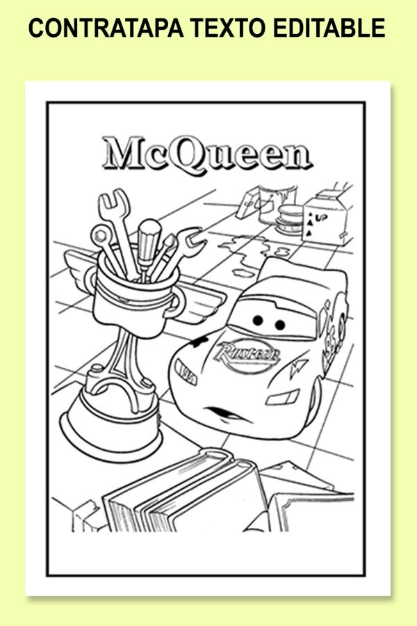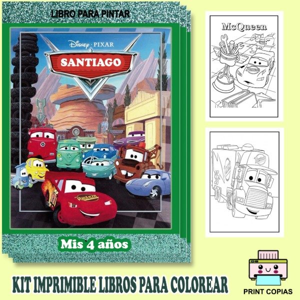 LIBRITO PARA COLOREAR PERSONALIZADOS TEMÁTICA CARS TAPA VERDE
