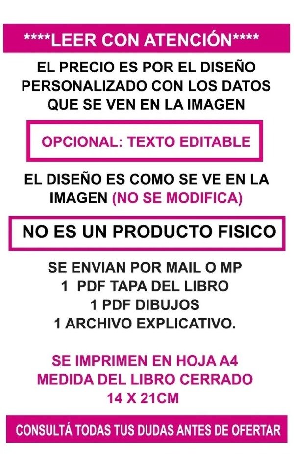 Te enviamos los diseños por MAIL para que imprimas en tu casa o gráfica en formato PDF (no editable)