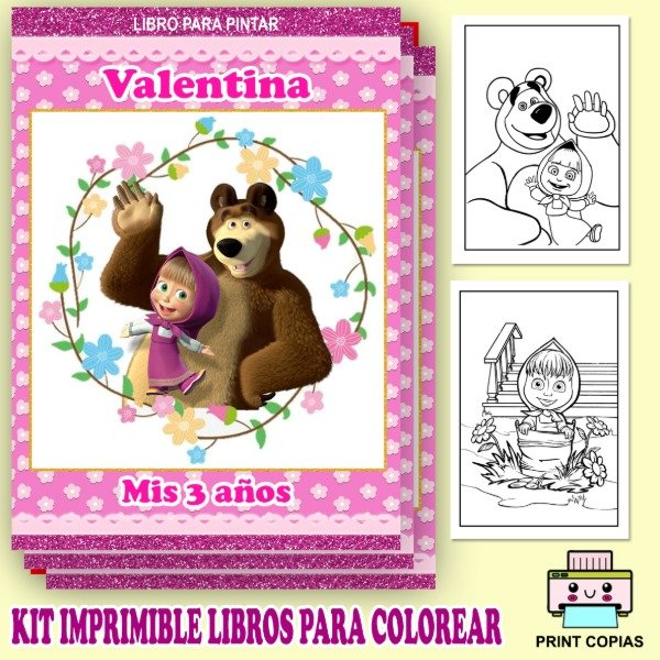 LIBRITO PARA COLOREAR PERSONALIZADOS TEMÁTICA MASHA Y EL OSO