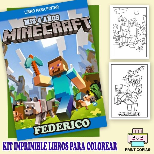LIBRITO PARA COLOREAR PERSONALIZADOS TEMÁTICA MINECRAFT