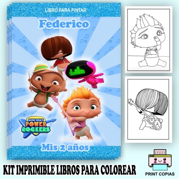 LIBRITO PARA COLOREAR PERSONALIZADOS TEMÁTICA MINI BEAT POWER ROCKERS VARÓN