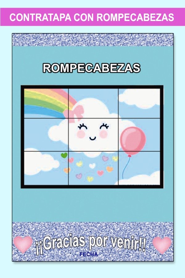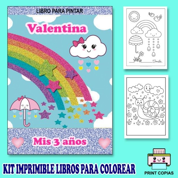 LIBRITO PARA COLOREAR PERSONALIZADOS TEMÁTICA NUBES Y ARCO IRIS