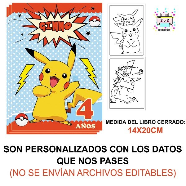 LIBRITO PARA COLOREAR IMPRIMIBLE PERSONALIZADO TEMÁTICA PIKACHU