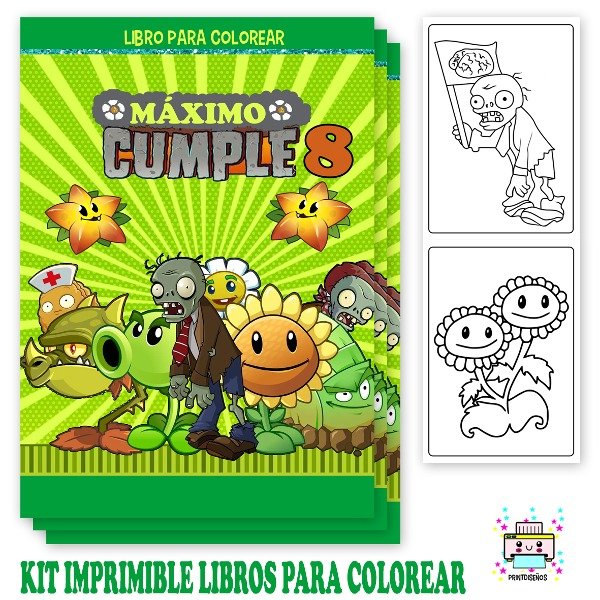 LIBRITO PARA COLOREAR IMPRIMIBLE PERSONALIZADO TEMÁTICA PLANTAS Y ZOMBIES