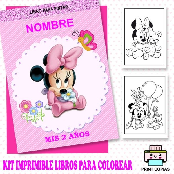 LIBRITOS PARA COLOREAR Y PERSONALIZAR TEMÁTICA MINIE BEBÉ ROSA