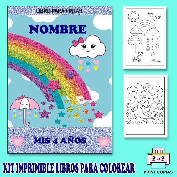 LIBRITOS PARA COLOREAR Y PERSONALIZAR TEMÁTICA NUBES Y ARCO IRIS