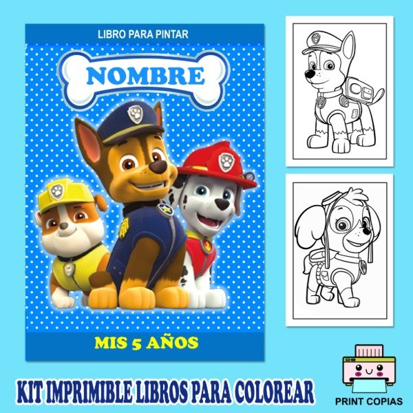 LIBRITOS PARA COLOREAR Y PERSONALIZAR TEMÁTICA PAW PATROL VARÓN