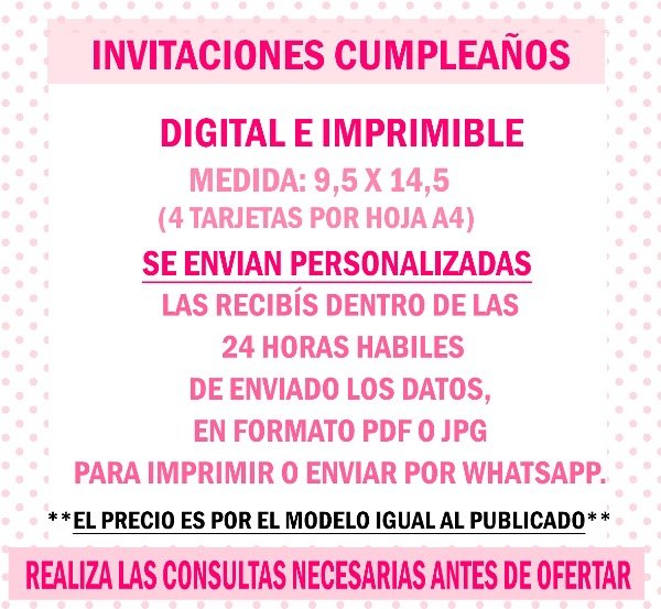 Te enviamos el diseño por MAIL para que imprimas en tu casa o gráfica en formato PDF (no editable) y una sola imagen para que envíes por WhatsApp.