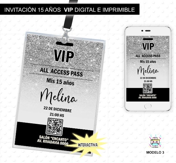 TARJETA INVITACIÓN CUMPLE 15 AÑOS VIP INTERACTIVA MODELO A ELECCIÓN