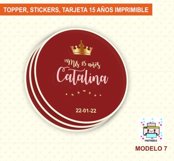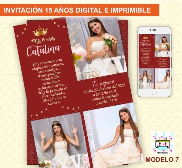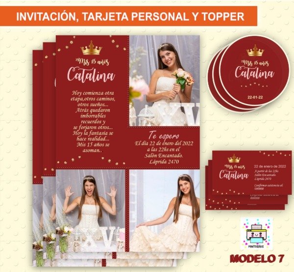 KIT IMPRIMIBLE INVITACIÓN, TOPPER, TARJETA PERSONAL CUMPLE 15 AÑOS CON FOTOS MODELO 7