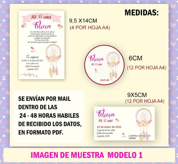 Te enviamos el diseño por MAIL para que imprimas en tu casa o gráfica en formato PDF (no editable) y una sola imagen para que envíes por WhatsApp.
