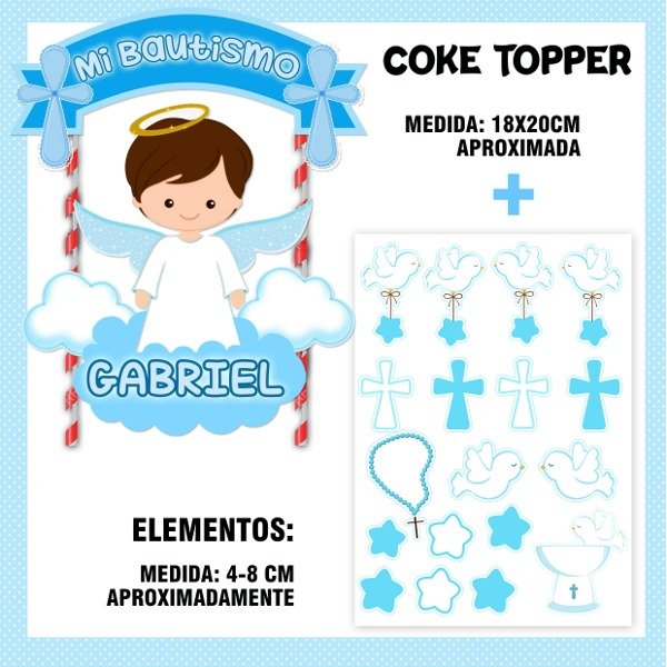 KIT IMPRIMIBLE CAKE TOPPER ADORNO TORTA BAUTISMO VARÓN