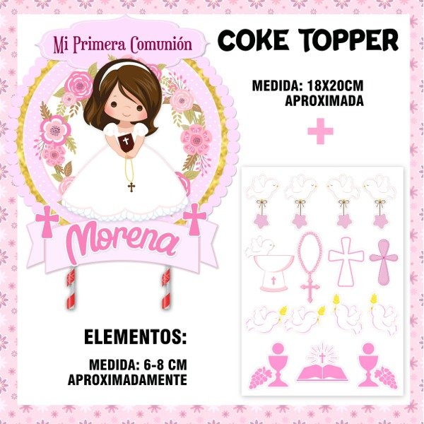 KIT IMPRIMIBLE CAKE TOPPER ADORNO TORTA BAUTISMO NIÑA MODELO 1