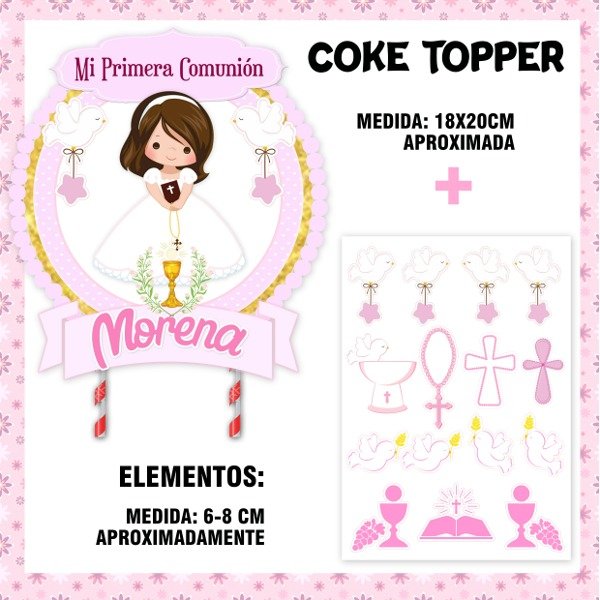 KIT IMPRIMIBLE CAKE TOPPER ADORNO TORTA BAUTISMO NIÑA MODELO 3