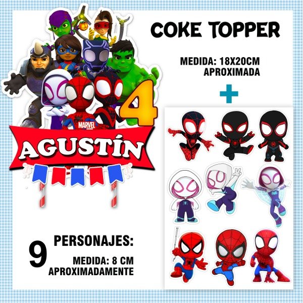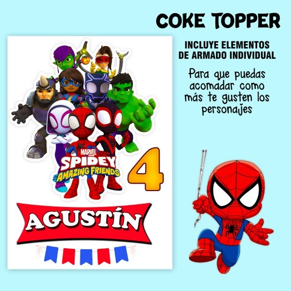 KIT IMPRIMIBLE CAKE TOPPER ADORNO TORTA SPIDEY Y SUS SORPRENDENTES AMIGOS MODELO 2