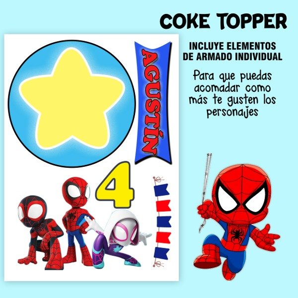 KIT IMPRIMIBLE CAKE TOPPER ADORNO TORTA SPIDEY Y SUS SORPRENDENTES AMIGOS MODELO 3