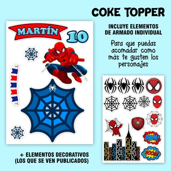 KIT IMPRIMIBLE CAKE TOPPER ADORNO TORTA SPIDERMAN MODELO 1